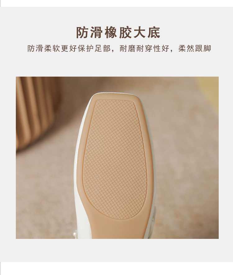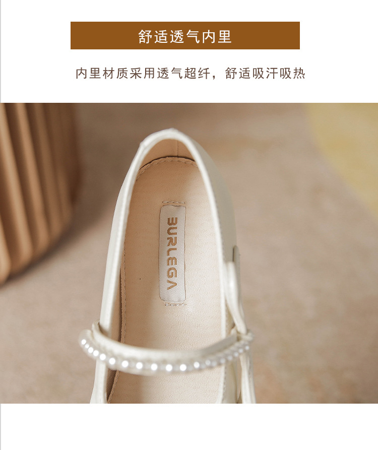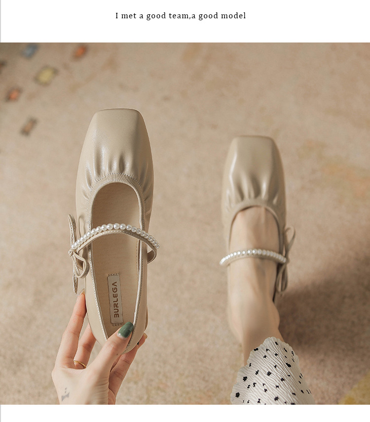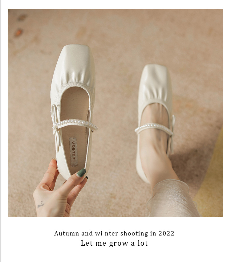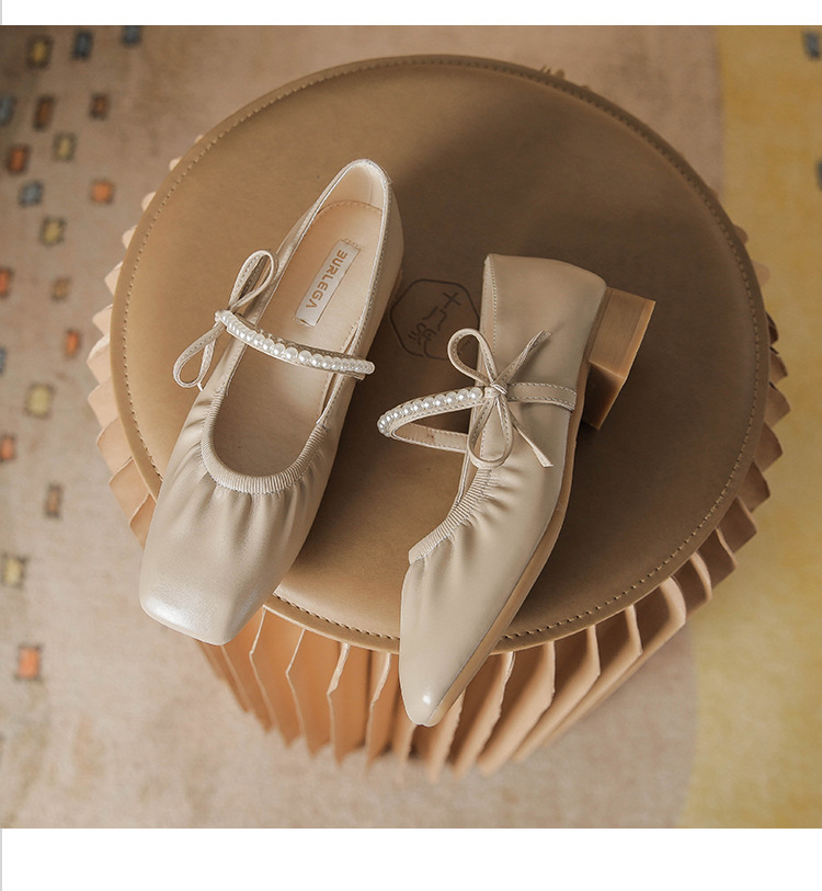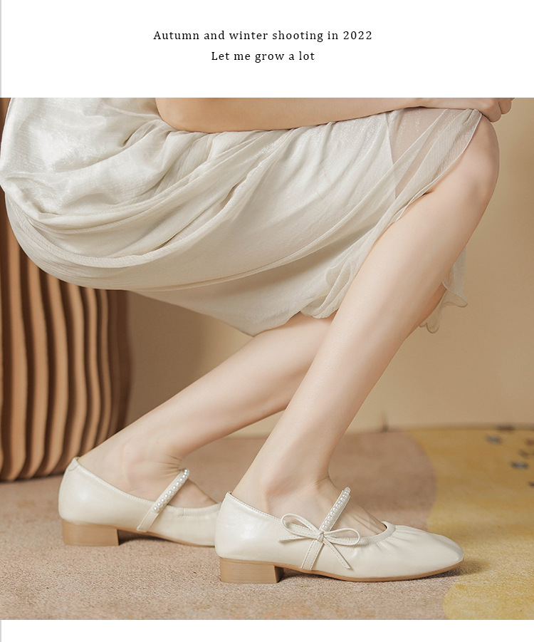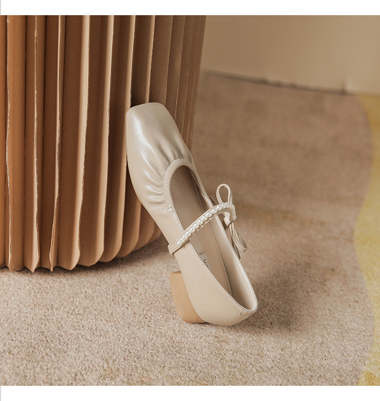 单鞋女2023年秋季新款方头粗跟奶奶鞋女仙女风珍珠蝴蝶结软底单鞋
