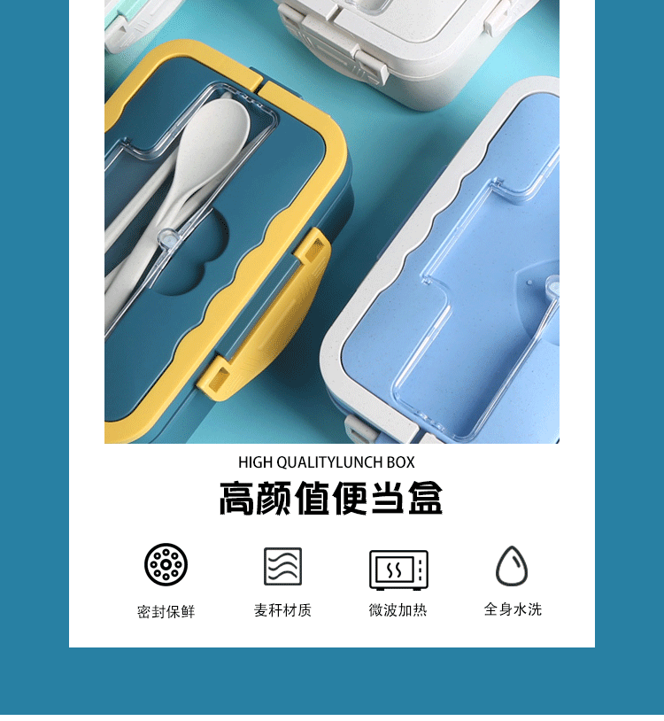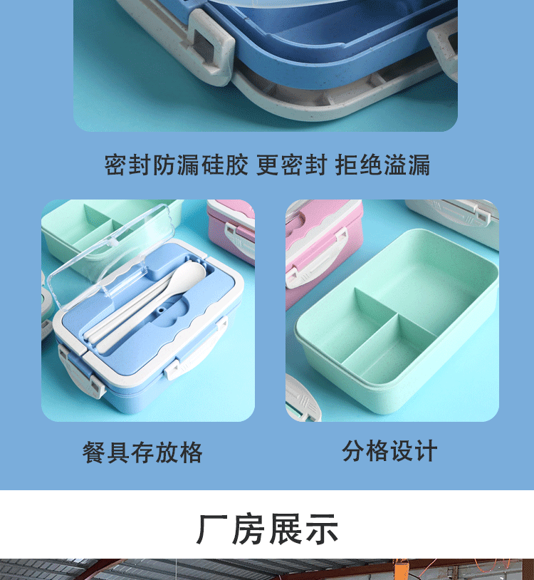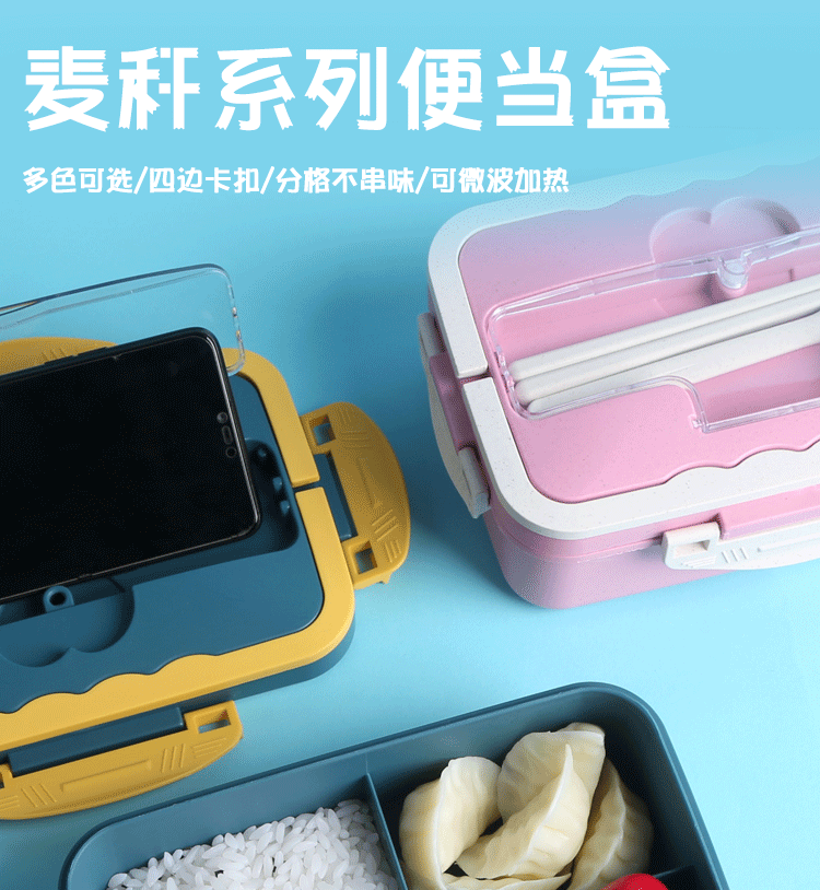 小麦秸秆便当盒分格微波炉午餐盒上班族塑料学生饭盒批发可印LOGO
