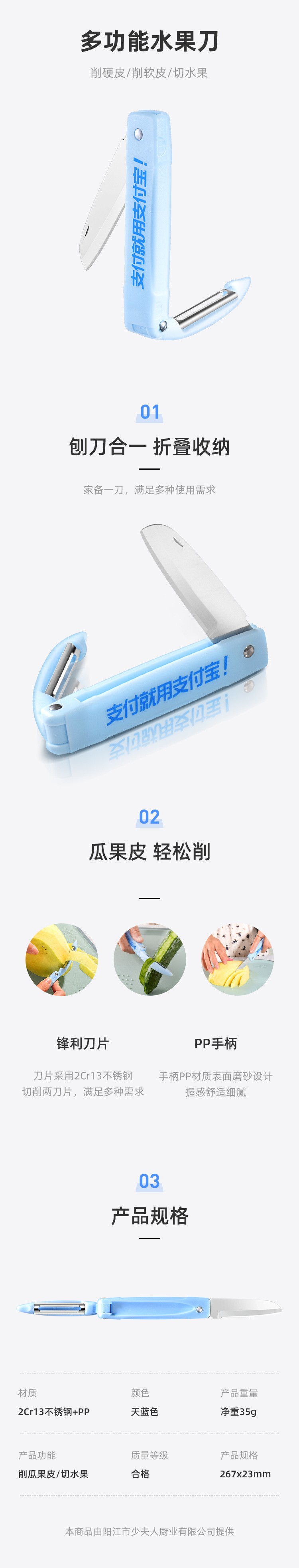 规格B176多功能削皮刀瓜果刨折叠两用款(蓝色)