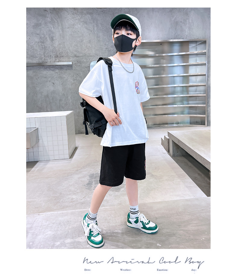 2023年新款童装男童短袖套装中大童帅气男孩夏季个性字母印花潮酷
