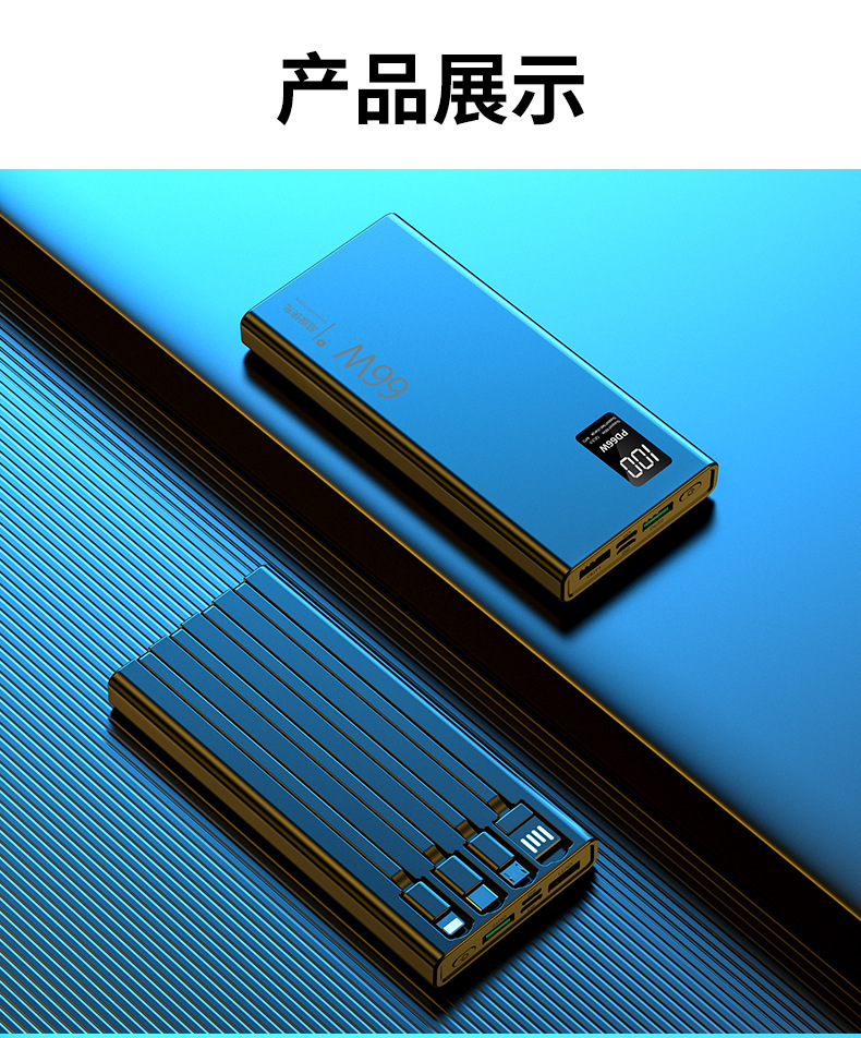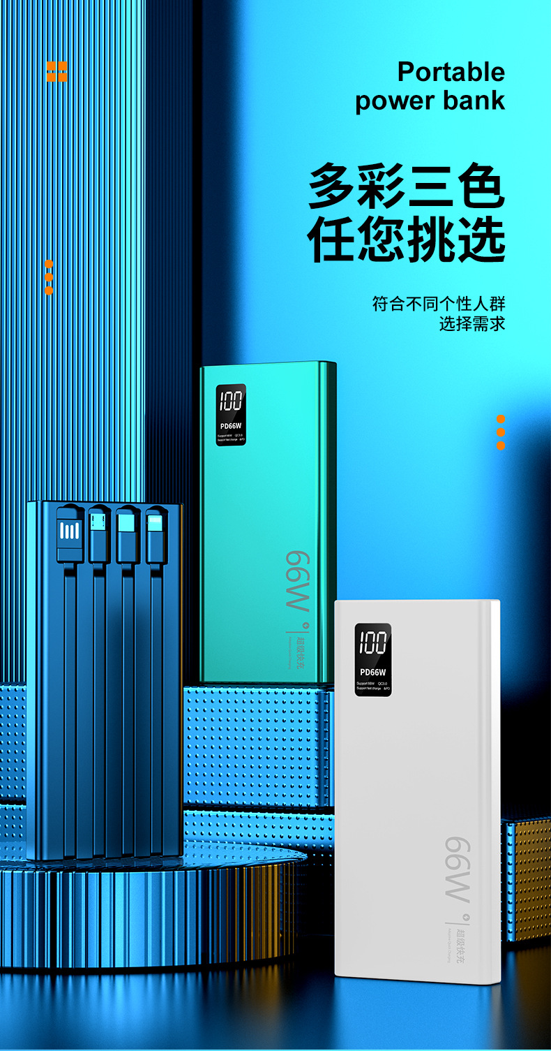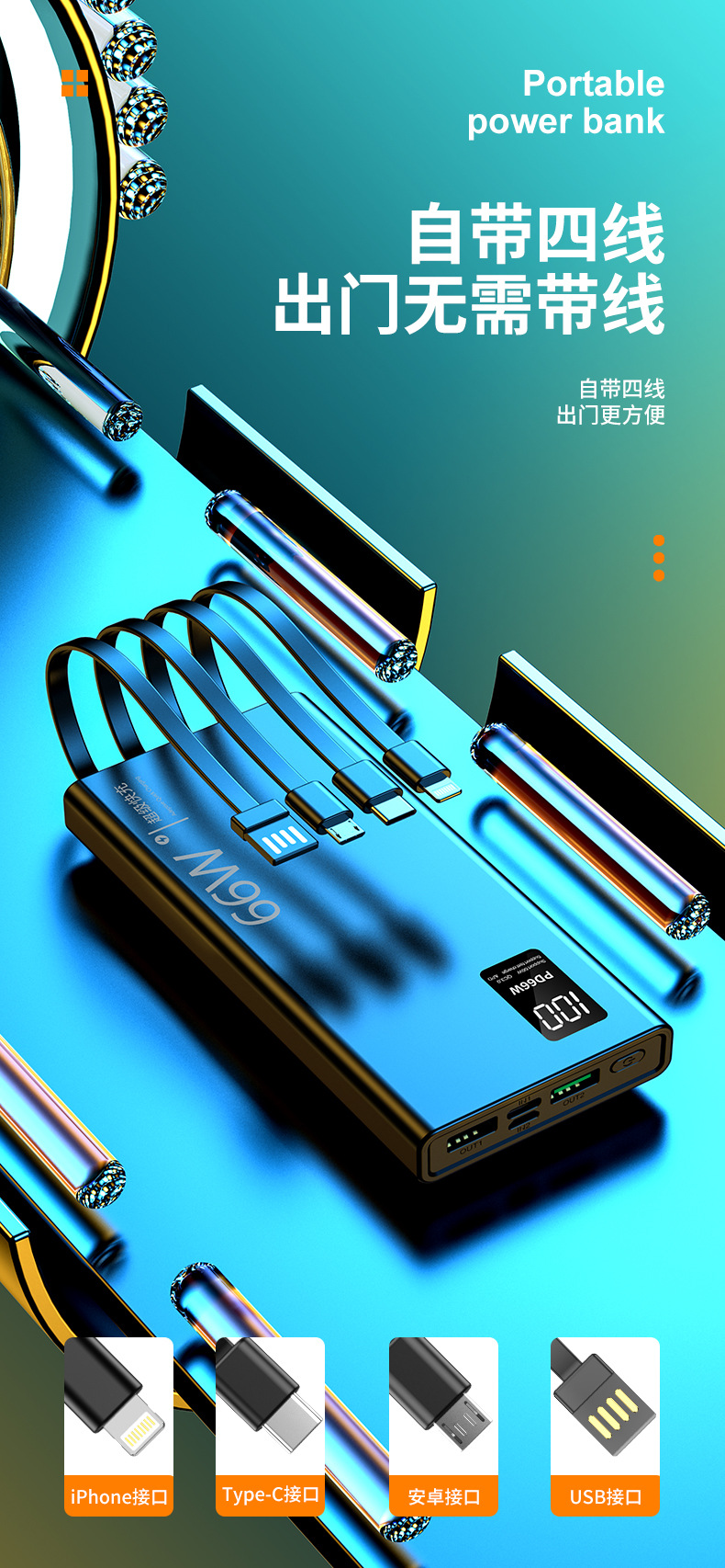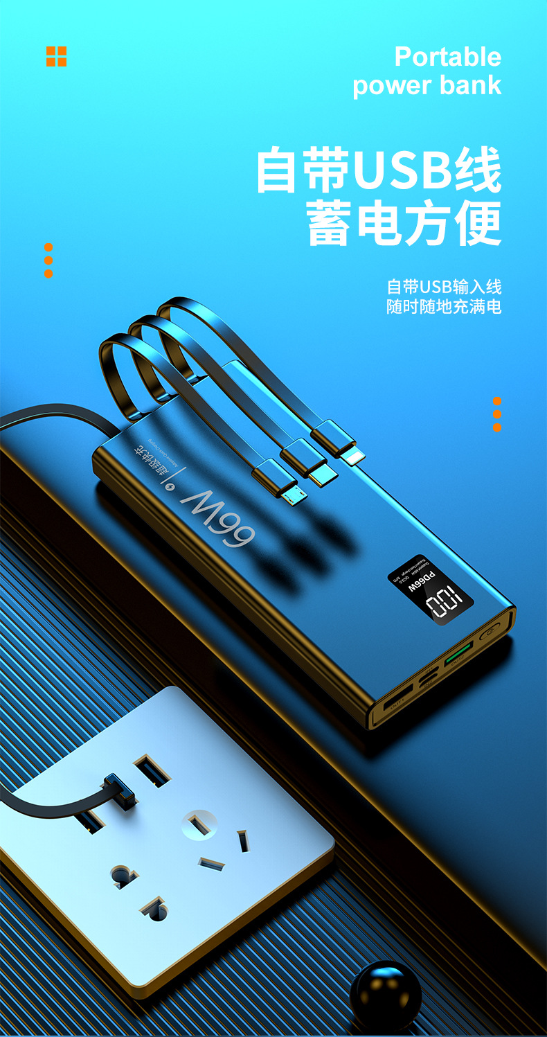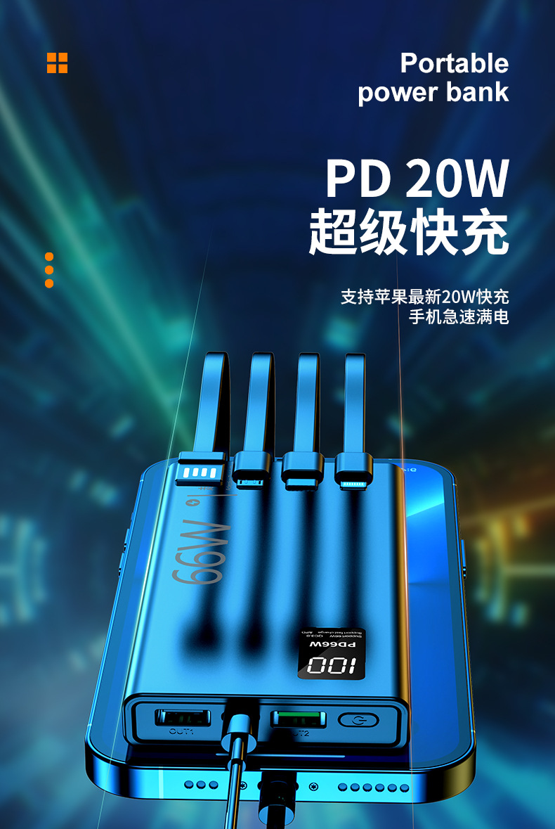 66W超快充自带线充电宝20000毫安超大容量移动电源