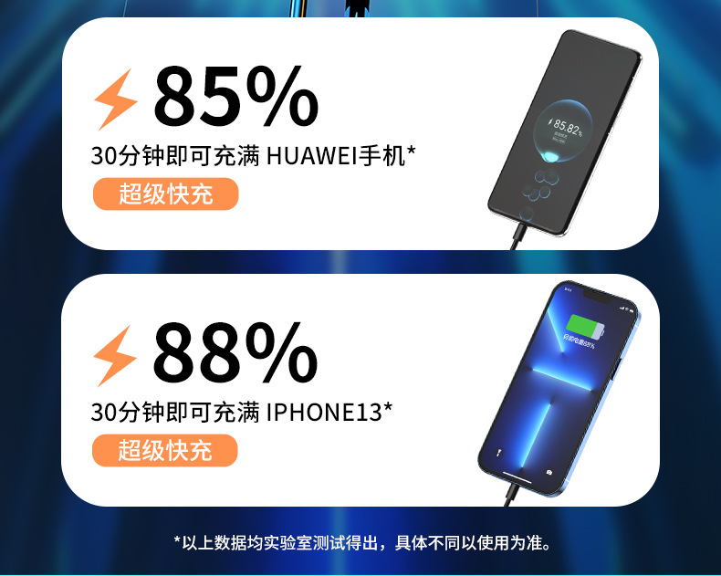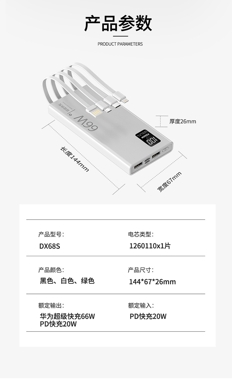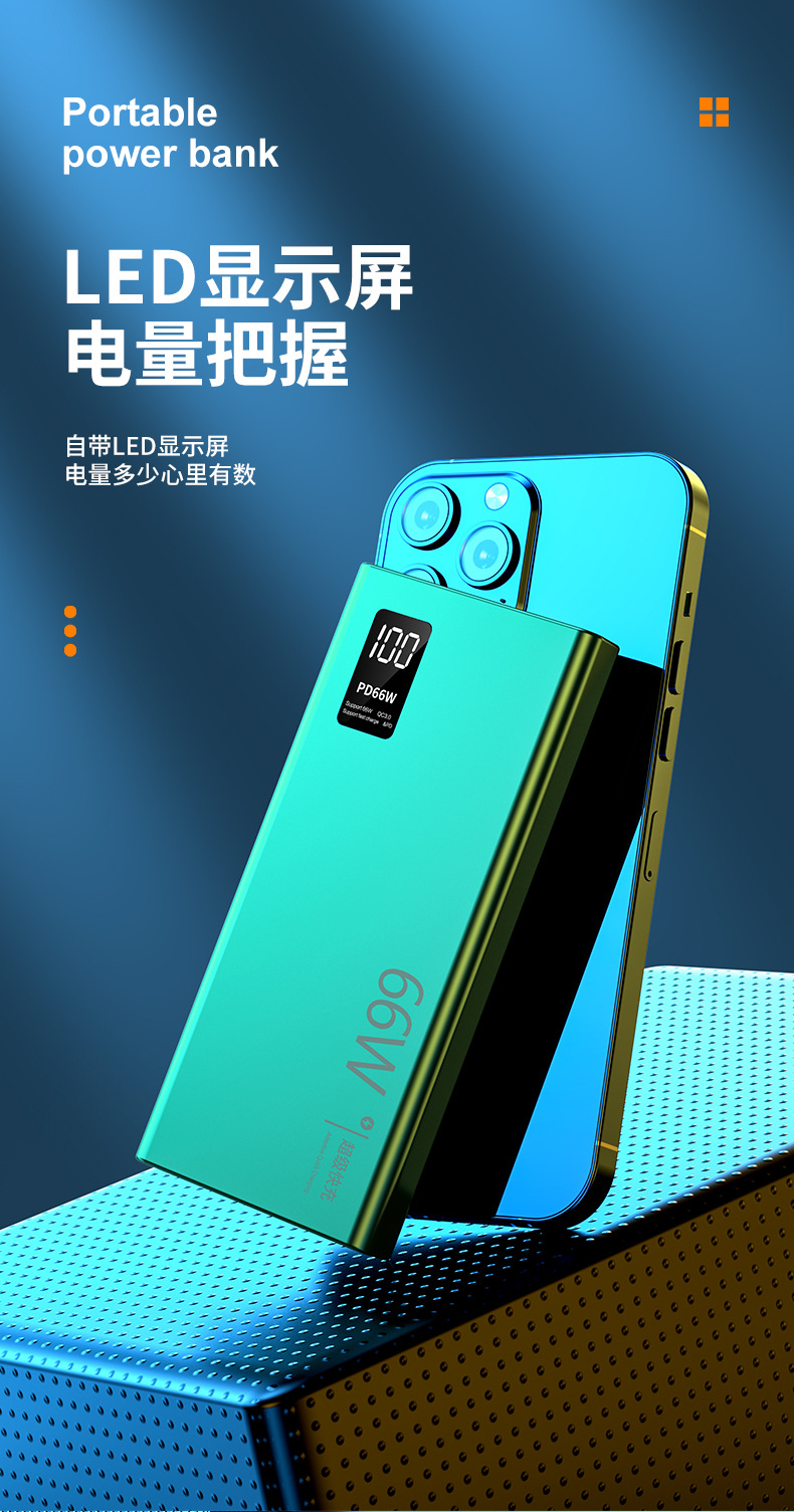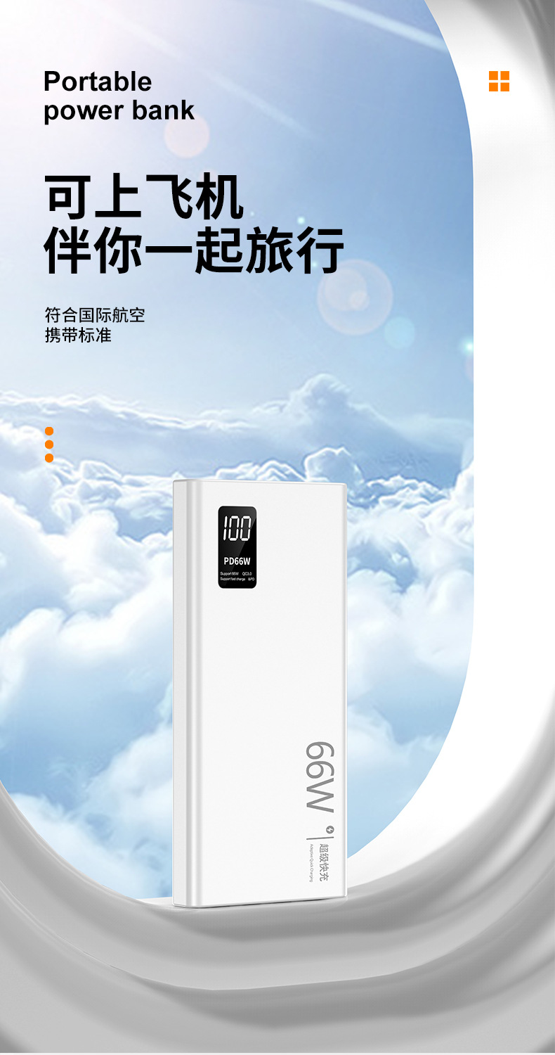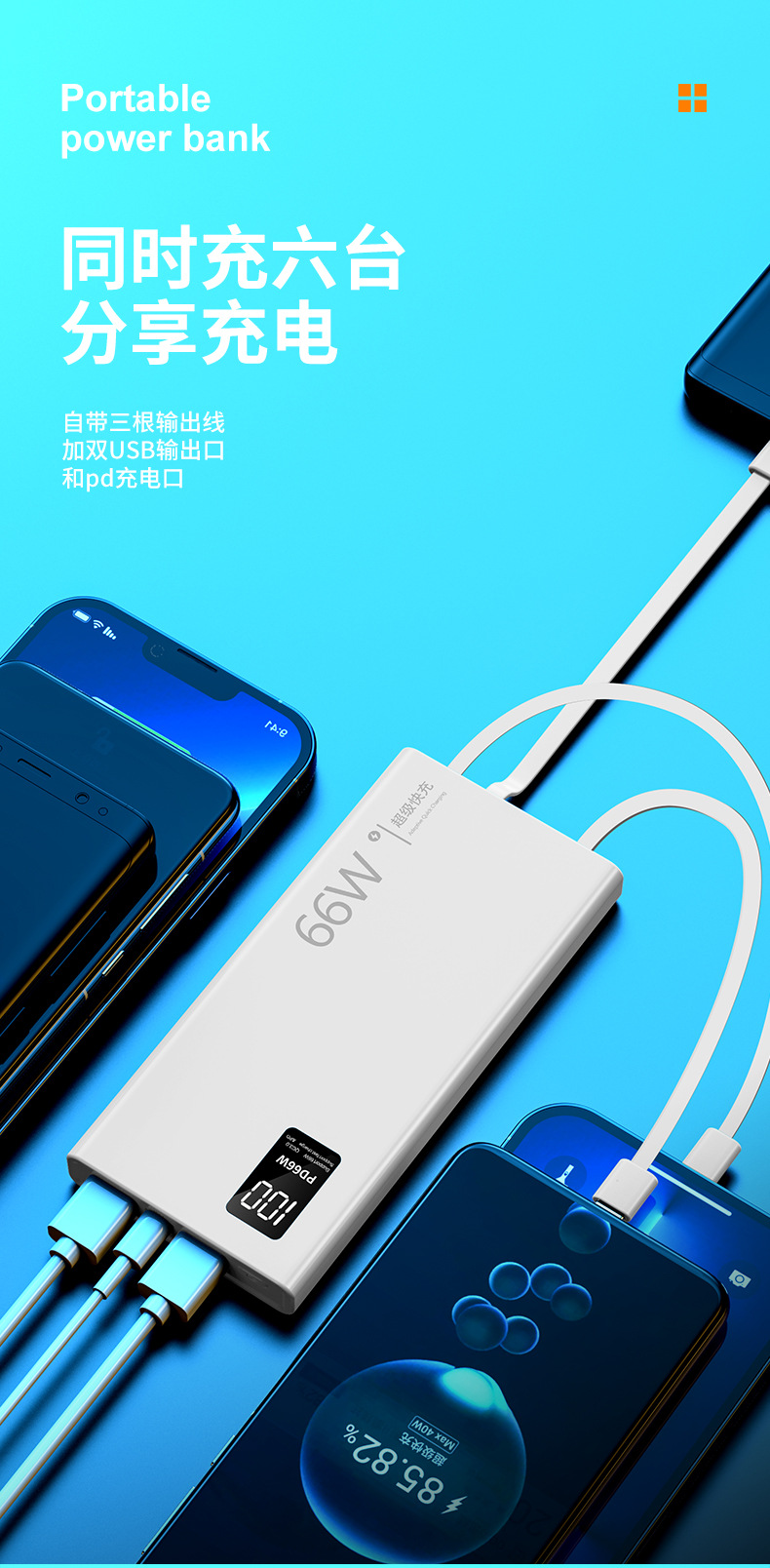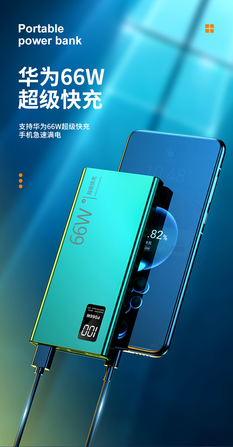 66W超快充自带线充电宝20000毫安超大容量移动电源