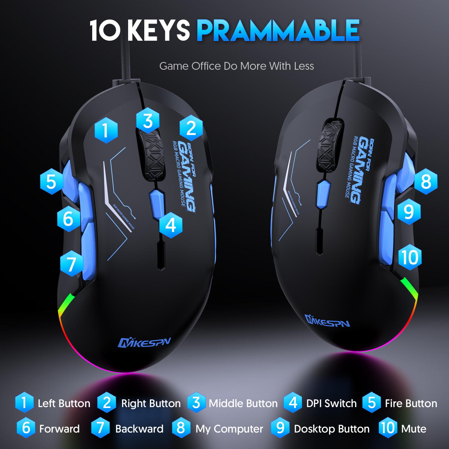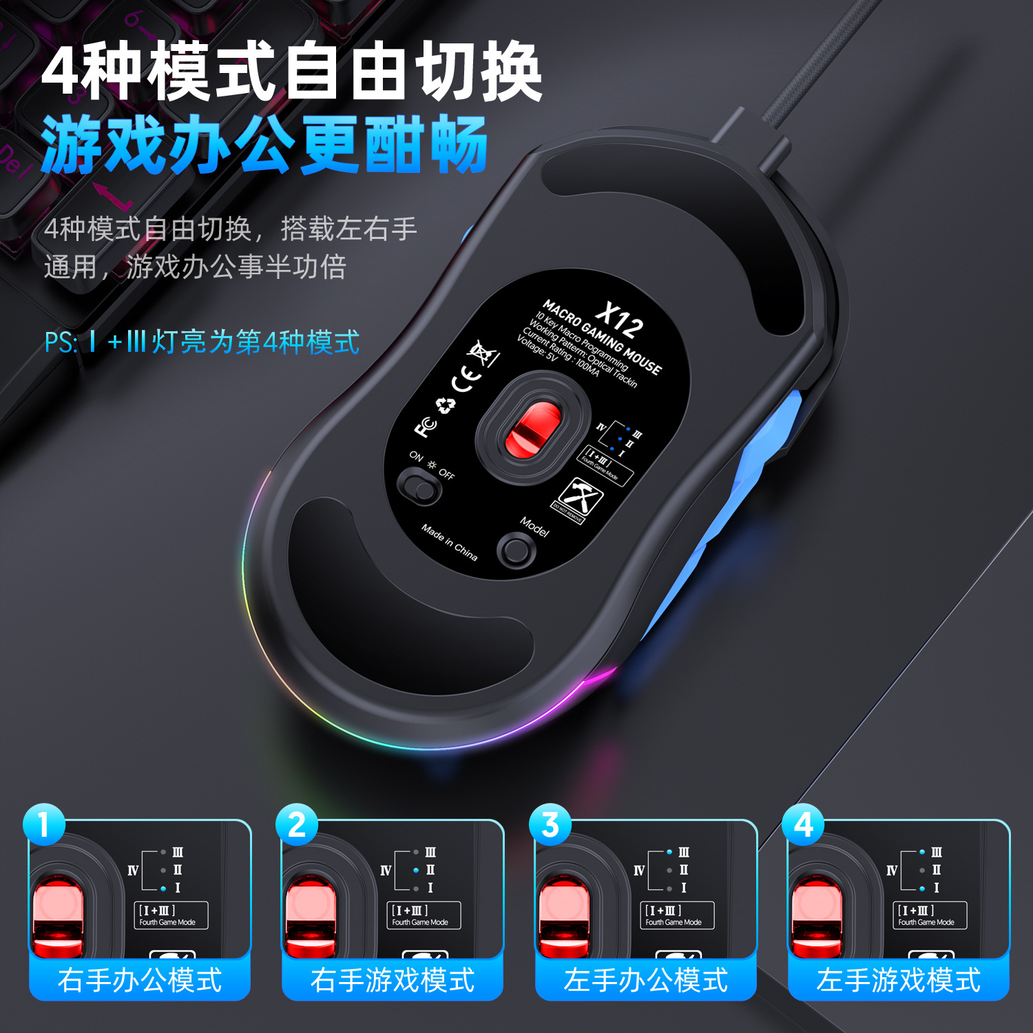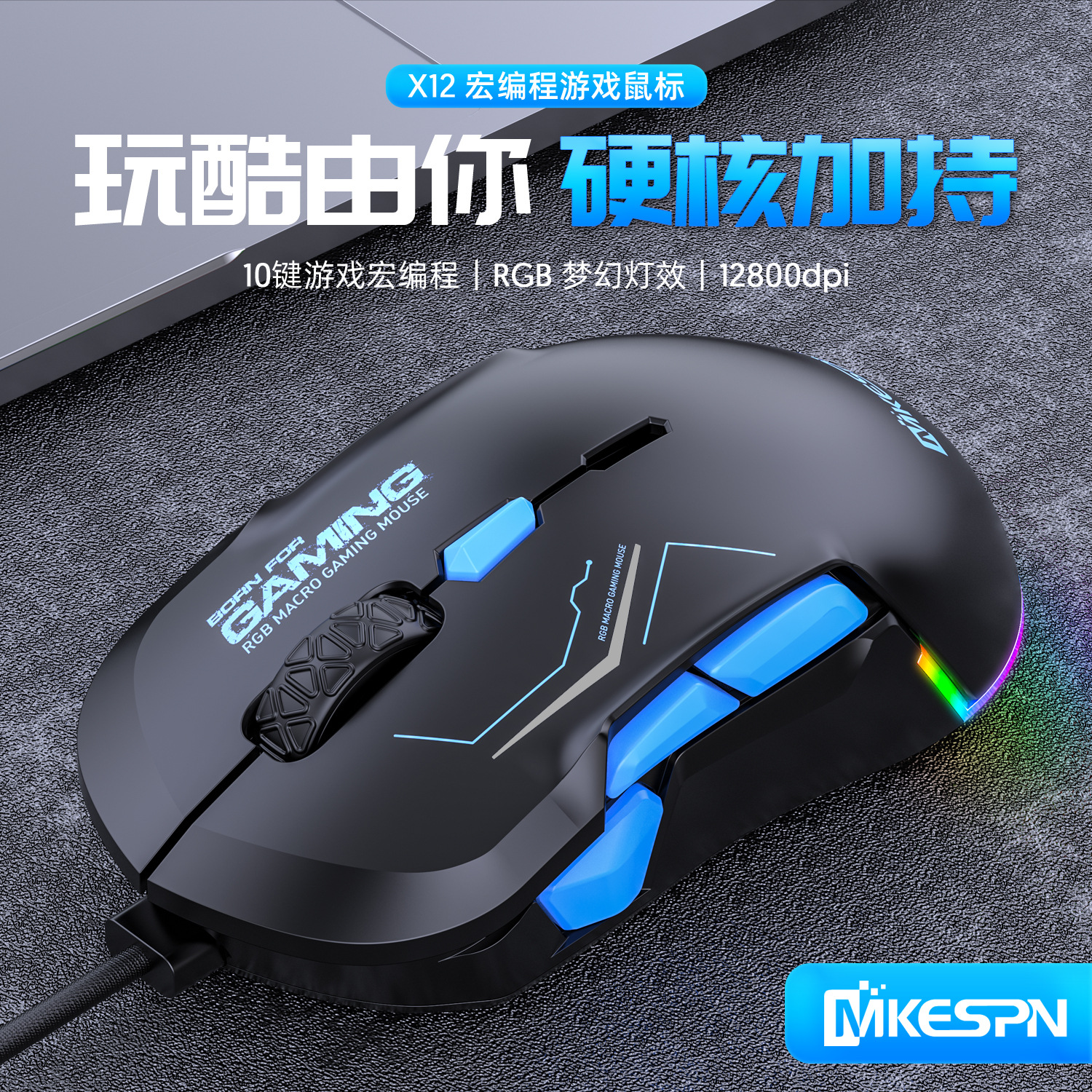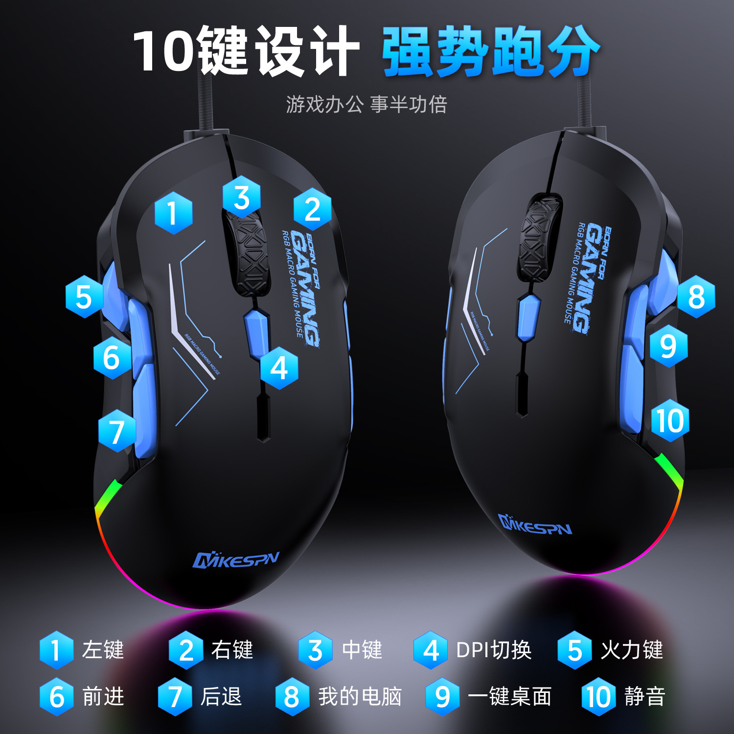 12800DPI左右手对称10按键RGB宏定义吃鸡游戏有线鼠标