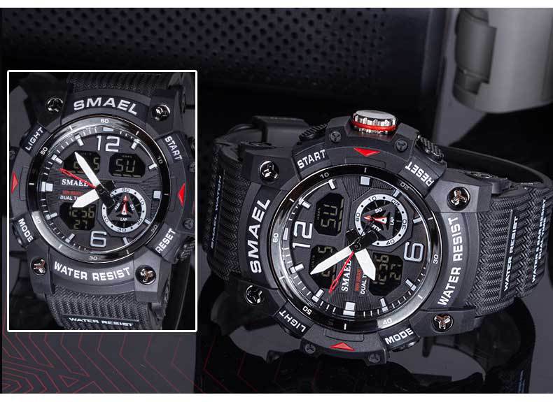 SMAEL斯麦尔新款户外透明手表男户外酷炫双显防水夜光电子手表